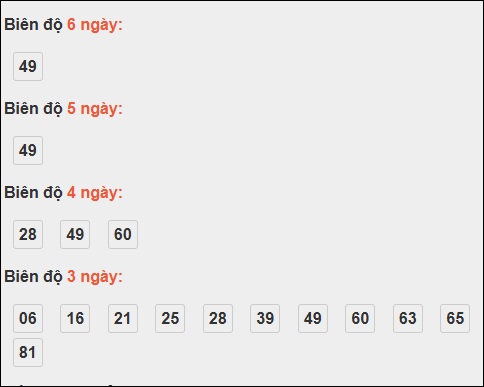 Đuôi 8: 39 ngày, Đuôi 9: 18 ngày, Đuôi 7: 13 ngày, Đuôi 6: 8 ngày, Đuôi 5: 3 ngày
