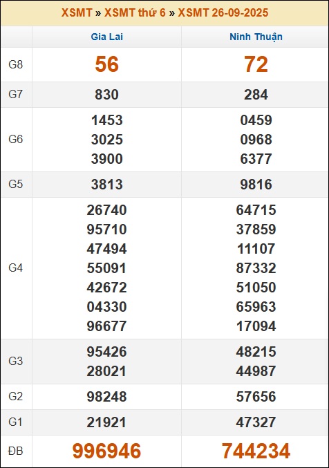 Kết quả xổ số Miền Trung 26/09/2025 thứ 6 tuần trước