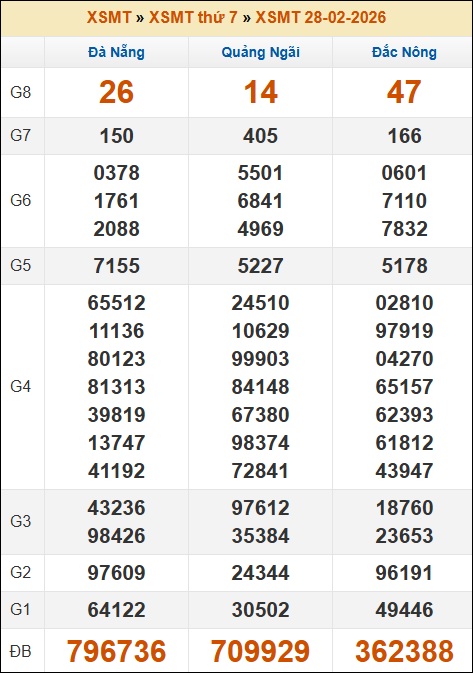 Kết quả xổ số Miền Trung 28/02/2026 thứ 7 tuần trước