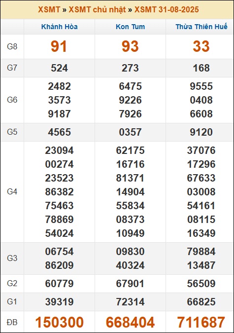 1. ✔️Xem lại KQXSMT chủ nhật tuần trước 31/8/2025