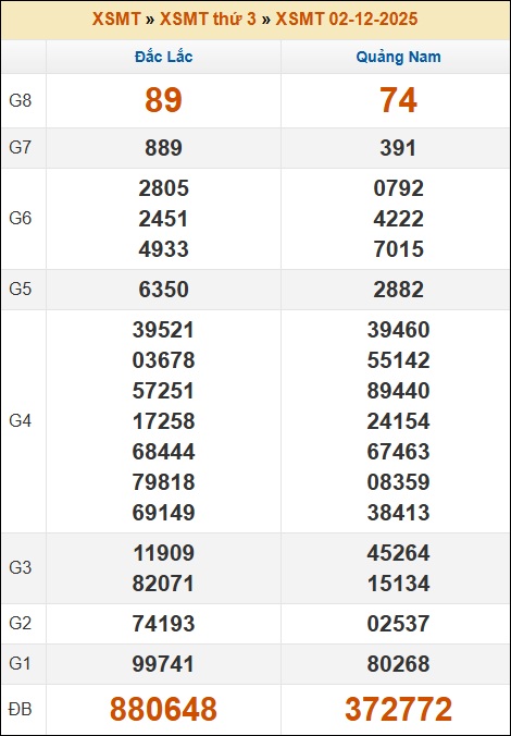 Kết quả xổ số Miền Trung 02/12/2025 thứ 3 tuần trước