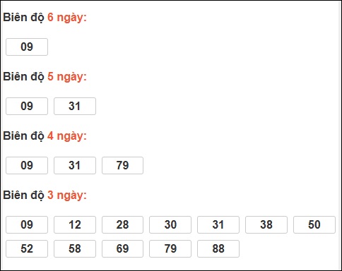 Đuôi 7: 7 ngày, Đuôi 4: 6 ngày, Đuôi 5: 6 ngày, Đuôi 3: 5 ngày, Đuôi 9: 4 ngày