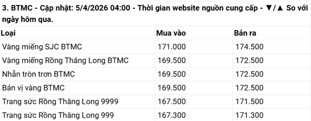 Bảng giá vàng hôm nay 5/4/2026 mới nhất