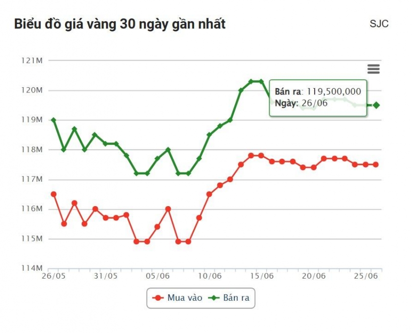 Giá vàng hôm nay 26/6/2025 không ghi nhận nhiều biến động ở thị trường trong nước, các thương hiệu lớn vẫn giữ nguyên giá trong vòng 24 tiếng qua.