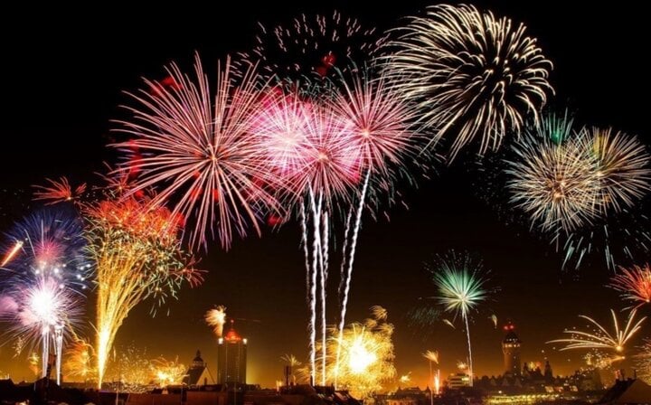 Pháo hoa được bắn vào khoảnh khắc giao thừa.