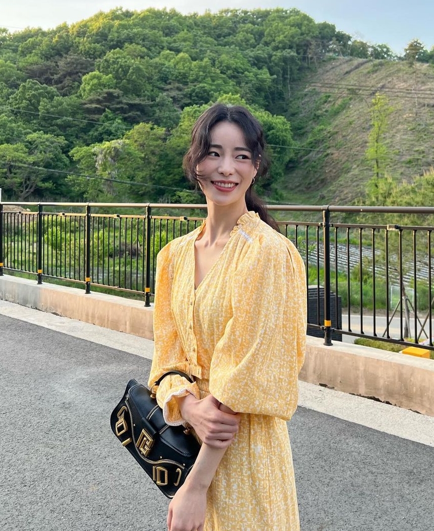 Lim Ji Yeon - được mệnh danh "nữ hoàng cảnh nóng" phim Hàn - diện nữ tính với váy hai dây, áo tay bồng cổ điển.