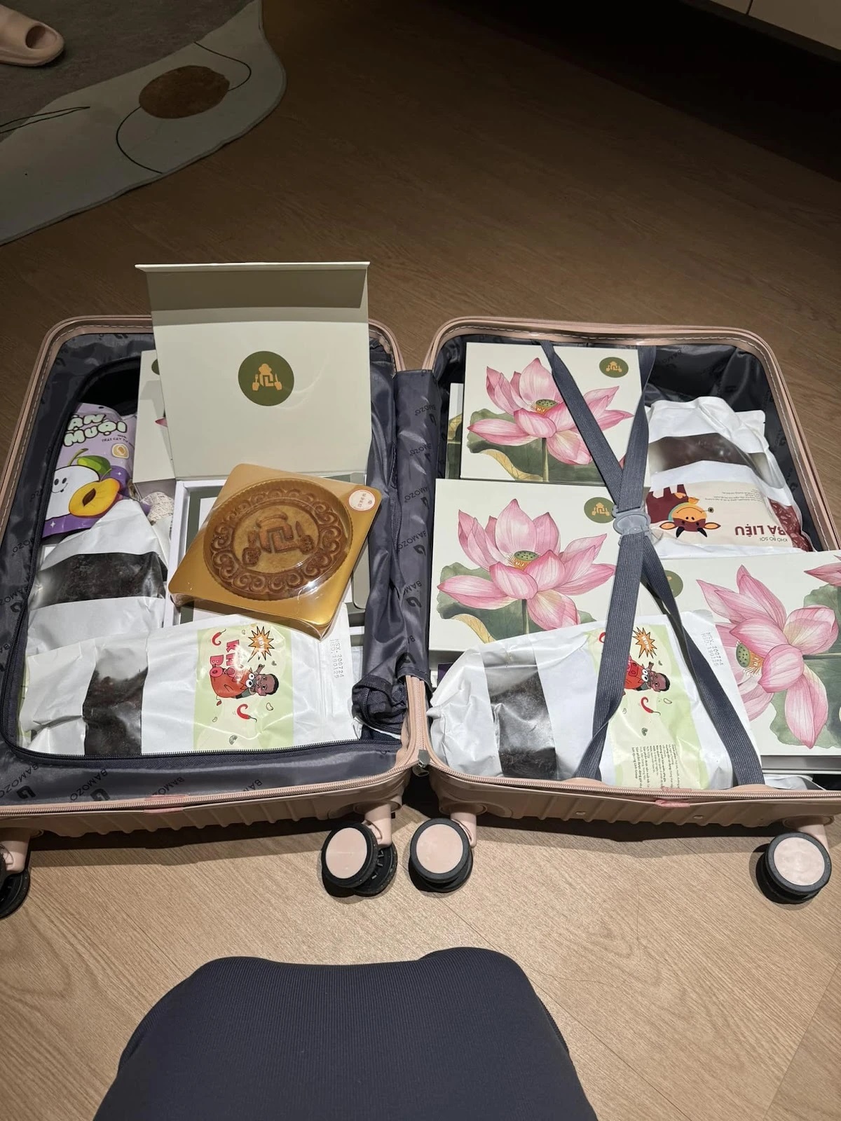 Mới đây, Hằng Du Mục tỏ ra "bức xúc" với chị em nhà Quang Linh vlog. Cụ thể, cô viết: "Ui là trời. Bảo Bà Lệ Ông Linh là cho c mỗi vị 1 hộp thôi. Tao không xách nổi đâu. Nãy khiêng cái vali cứ bảo cái vali gì mà nặng thế, để có 2 hộp bánh mà nặng thế".