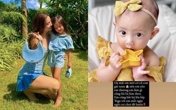 Mới đây Hồ Ngọc Hà không giấu cảm xúc khi có con gái trong 4 năm qua. "Nữ hoàng giải trí" viết: "Dạ mãi em mới có cô con gái rượu, nên em yêu em thương em làm gì cũng lôi bả làm theo. Em cũng bắt bả lên lớp Yoga với em mỗi ngày ngồi coi cho đỡ buồn". Bên cạnh đó, nữ ca sĩ còn đăng tải hình ái nữ Lisa khi còn nhỏ.