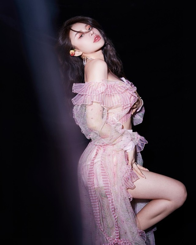 Trong bộ váy ôm sát, Gia Quận Nha khoe dáng chữ S đẹp mắt. Cô nhận được nhiều lời khen ngợi về vẻ đẹp từ người hâm mộ. Gia Quận Nha có hình xăm lớn ở ngực và một số hình xăm nhỏ trên tay.