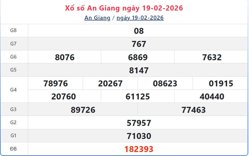 Kết quả xổ số An Giang thứ năm ngày 19/2/2026