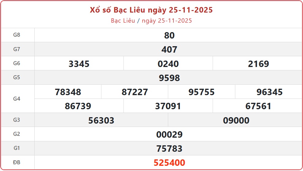 - XSBL 25/11, kết quả xổ số Bạc Liêu ngày 25/11/2025