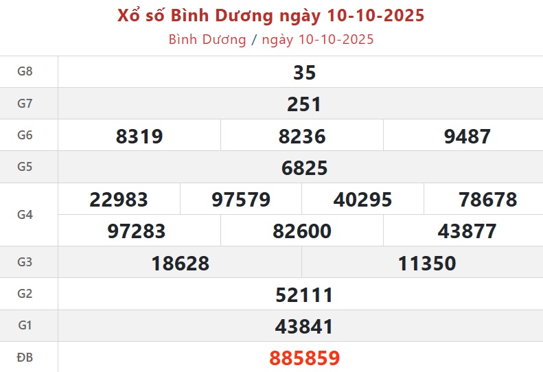 Theo dõi kết quả xổ số Bình Dương hôm nay ngày 24/10/2025 nhanh chóng và chính xác nhất để không bỏ lỡ thời gian nhận thưởng.