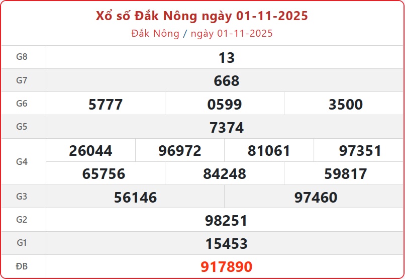 - XSDNO 1/11, Kết quả xổ số Đắk Nông ngày 1/11/2025