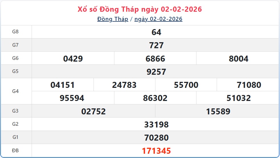 Kết quả xổ số Đồng Tháp ngày 2/2/2026