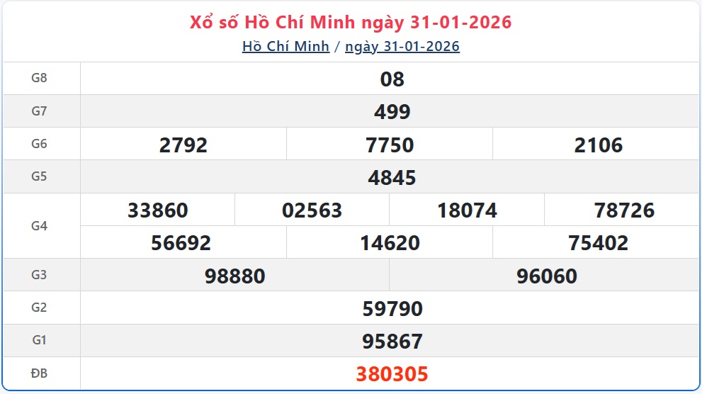 Kết quả xổ số Hồ Chí Minh ngày 31/1/2026