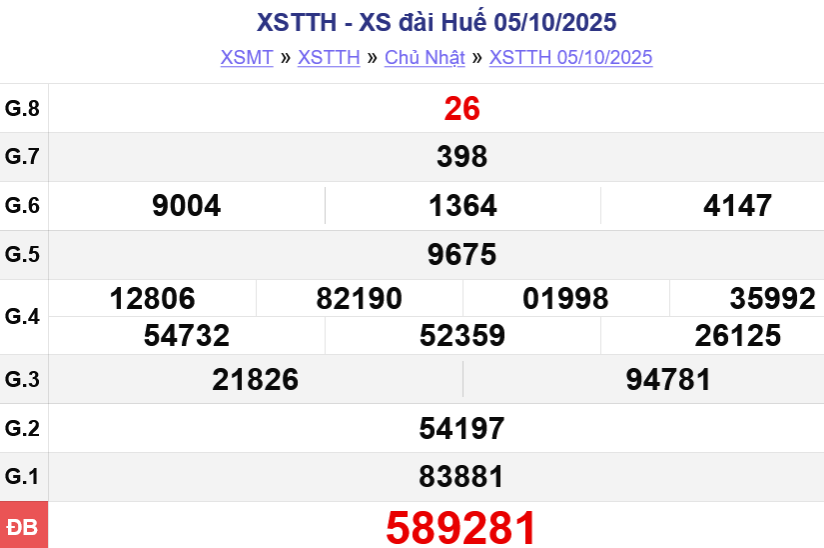 Theo dõi kết quả xổ số Huế hôm nay 19/10/2025 để cập nhật kết quả sớm nhất.