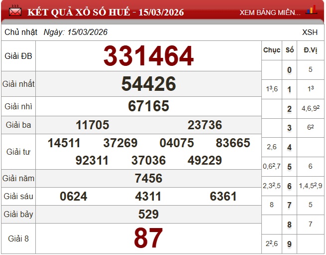 Kết quả xổ số Huế ngày 15/3/2026