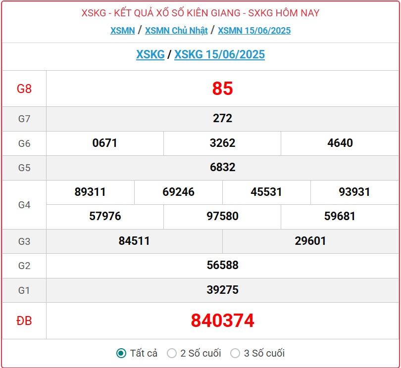 XSKG 15/6, kết quả xổ số Kiên Giang hôm nay 15/6/2025.