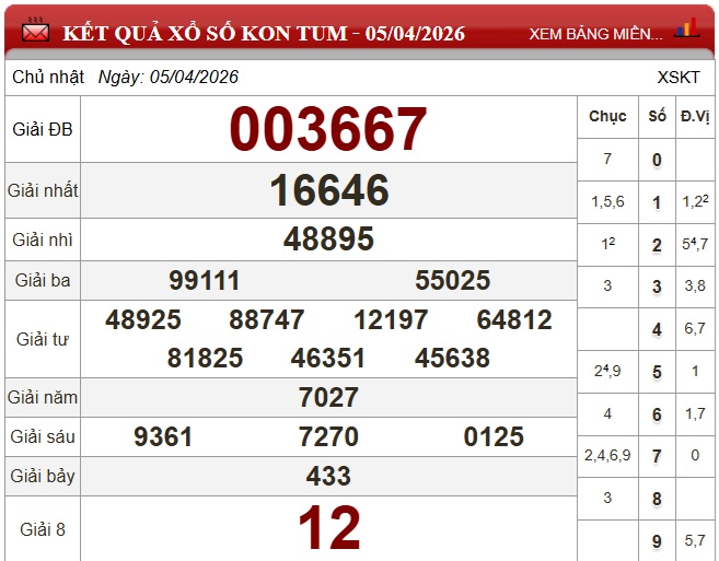 Trực tiếp Kết quả xổ số Kon Tum hôm nay - Kết quả XSKT 12/4 - XSKT hôm nay chủ nhật ngày 12/4/2026 - Xổ số Kon Tum hôm nay - Trực tiếp xổ số Kon Tum hôm nay