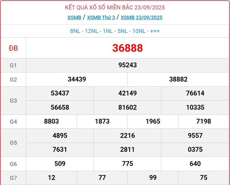 - XSMB 23/9. Kết quả xổ số miền Bắc ngày 23/9. KQXSMB 23/9/2025.