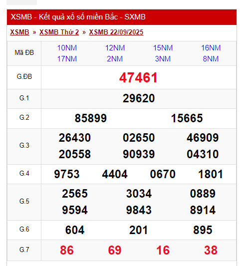 - XSMB 22/9. Kết quả xổ số miền Bắc ngày 22/9. KQXSMB 22/9/2025.