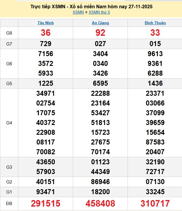 Kết quả xổ số miền Nam ngày 27/11/2025