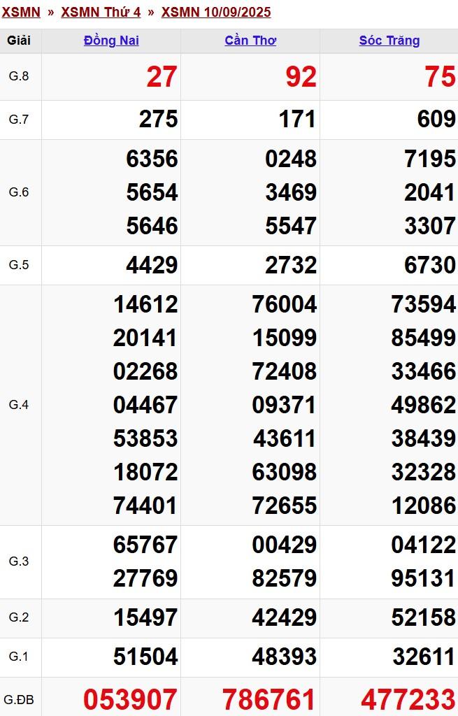 - Thứ Tư: XSMN được tổ chức bởi Đồng Nai, Cần Thơ và Sóc Trăng.