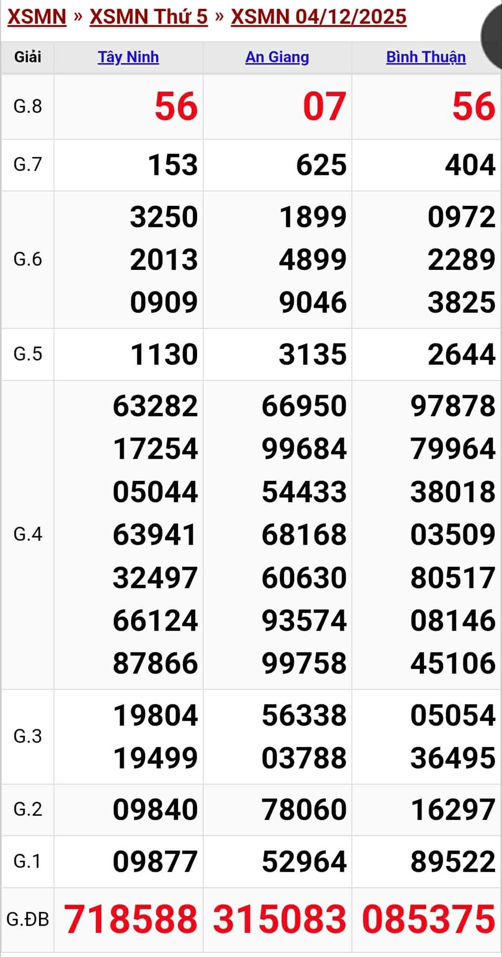 Kết quả xổ số miền Nam ngày 4/12/2025