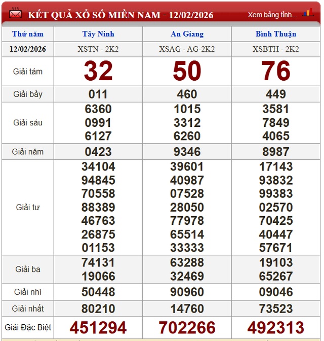 Kết quả xổ số miền Nam ngày 12/2/2026