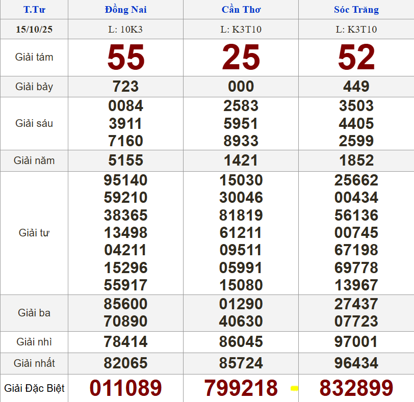 Giải bảy | (3 số) |