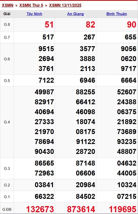 Kết quả xổ số miền Nam ngày 13/11/2025