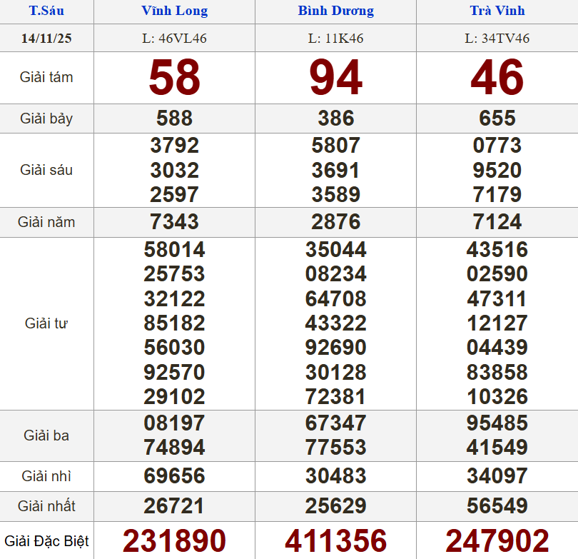 Kết quả xổ số miền Nam ngày 14/11/2025