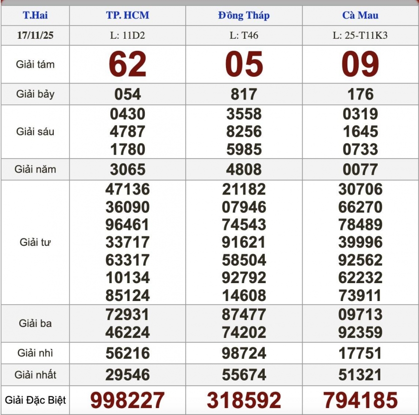 Kết quả xổ số miền Nam ngày 17/11/2025. KQXSMN 17/11