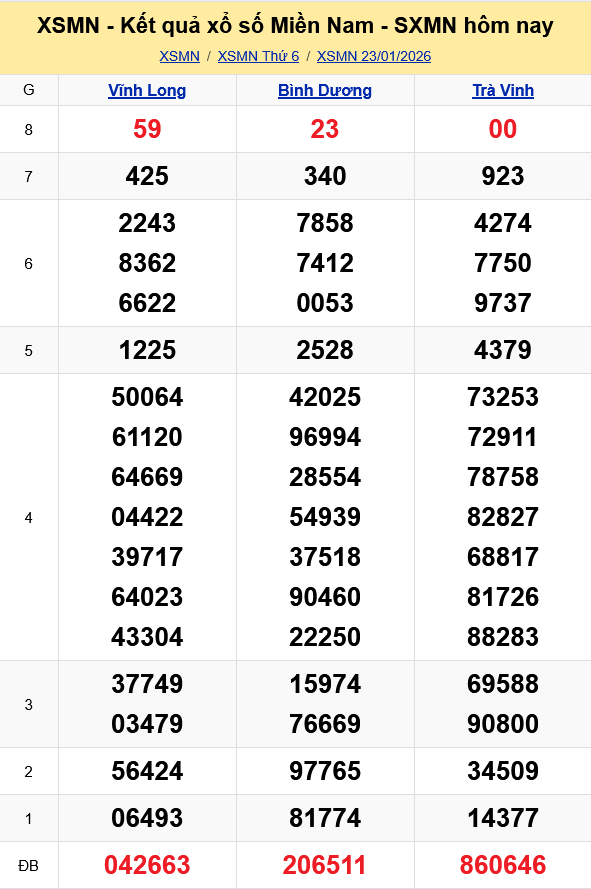 Kết quả xổ số miền Nam ngày 23/1/2026