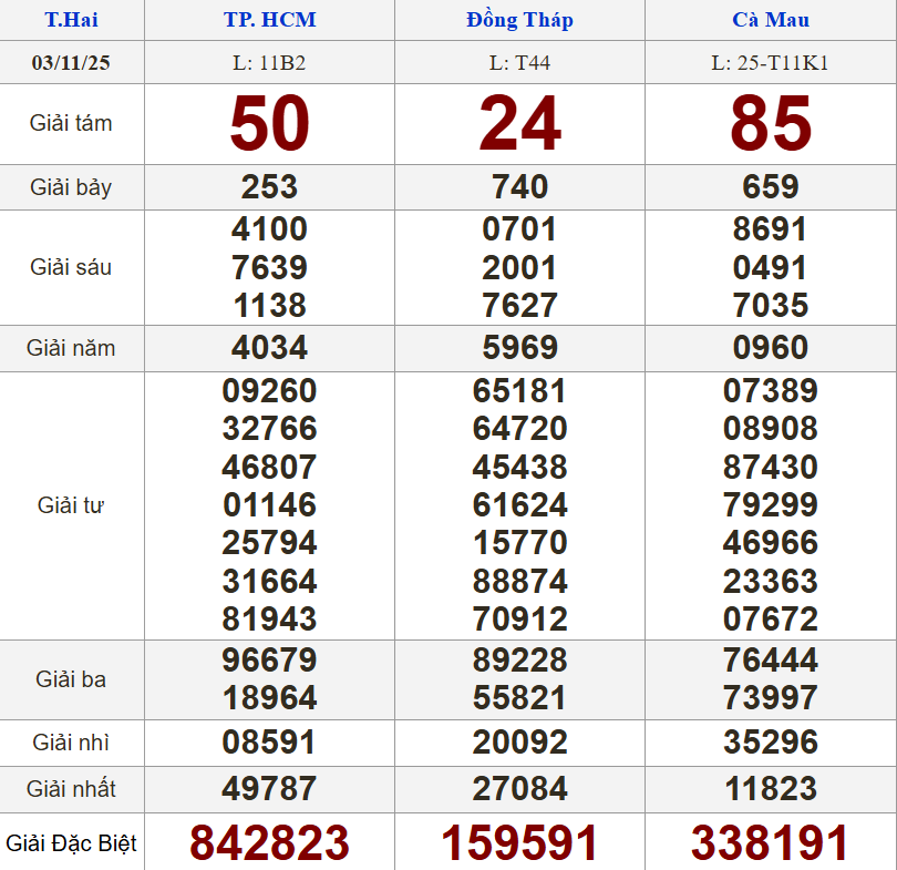 Kết quả xổ số miền Nam ngày 3/11/2025