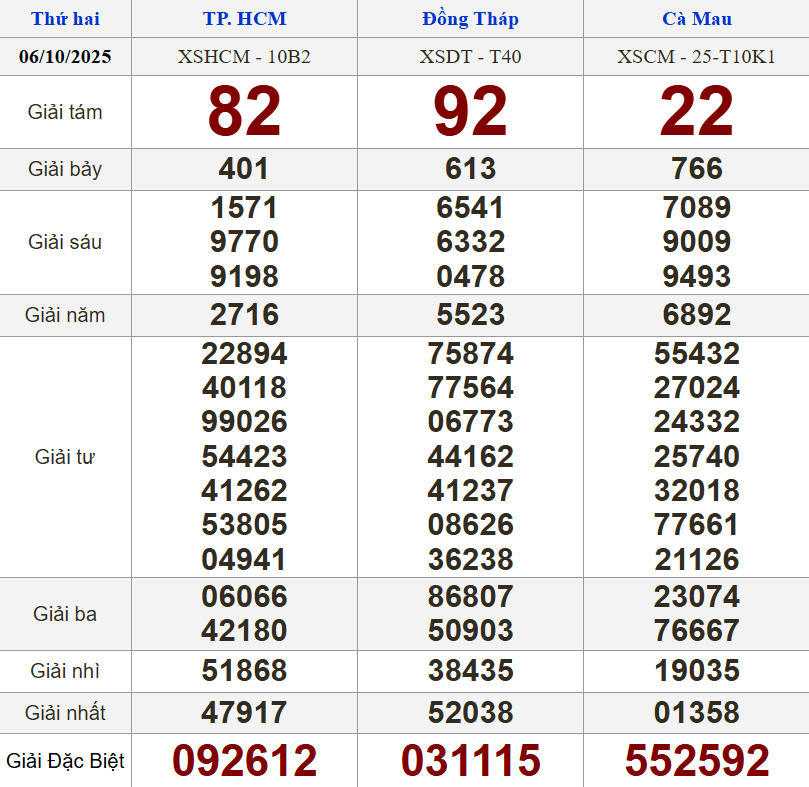 - Kết quả xổ số miền Nam ngày 6/10. KQXSMN 6/10/2025. XSMN 6/10