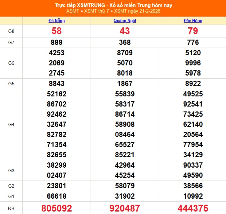 Trực Tiếp kết quả xổ số miền Trung 22/2/2026 - XSMT 22/2