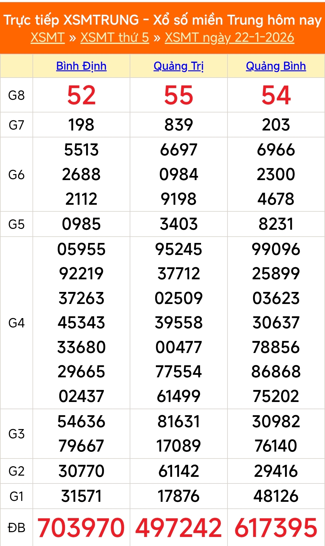 Kết quả xổ số miền Trung ngày 22/1/2026