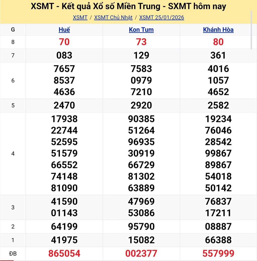 Kết quả xổ số miền Trung ngày 25/1/2026