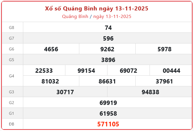 XSQB 4/12. Kết quả xổ số Quảng Bình hôm nay 4/12/2025 được quay thưởng vào lúc 17h15 bởi Công ty TNHH MTV Xổ số kiến thiết Quảng Bình. Kết quả các giải thưởng của XSQB 4/12/2025 được công bố lần lượt từ giải nhất cho đến giải tám, cuối cùng là giải đặc biệt.