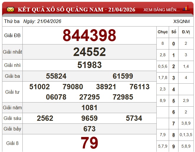 Theo dõi kết quả xổ số Quảng Nam hôm nay 28/4/2026 nhanh chóng, chính xác nhất để không bỏ lỡ thời gian nhận thưởng.