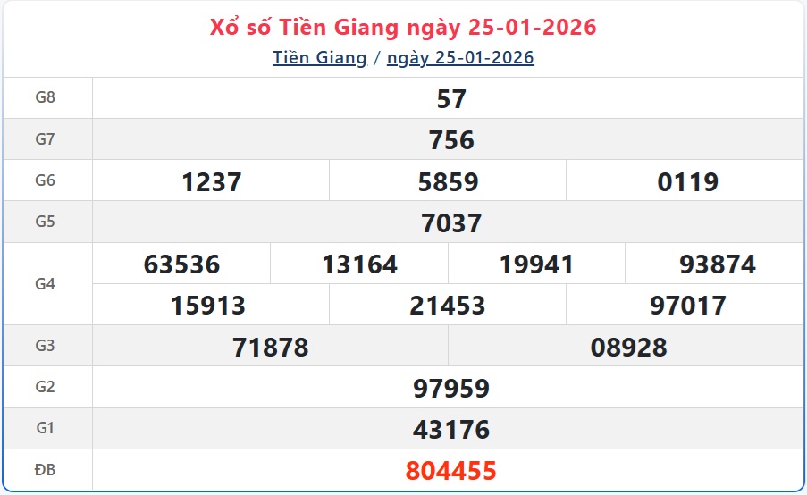 Kết quả xổ số Tiền Giang chủ nhật ngày 25/1/2026