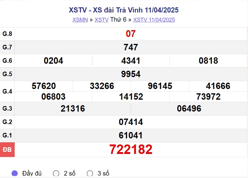Trực tiếp Kết quả xổ số Bình Dương hôm nay - Kết quả XSTV 25/4 - XSTV hôm nay Thứ Sáu ngày 25/4/2025 - Xổ số Trà Vinh hôm nay thứ Sáu ngày 25/4/2025