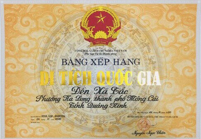 Trải qua thăng trầm lịch sử, ngày 4/11/2020, Bộ Văn hóa, Thể thao và Du lịch ban hành quyết định xếp hạng Di tích cấp Quốc gia đối với di tích lịch sử đền Xã Tắc. Trước đó, vào năm 2005, đền Xã Tắc được UBND tỉnh Quảng Ninh xếp hạng di tích lịch cấp tỉnh.