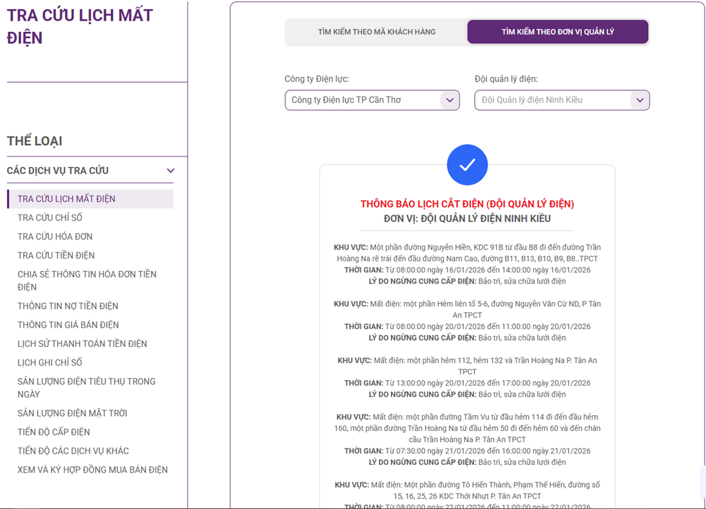 Để cập nhật lịch cắt điện Cần Thơ, người dân có thể truy cập tại đây.