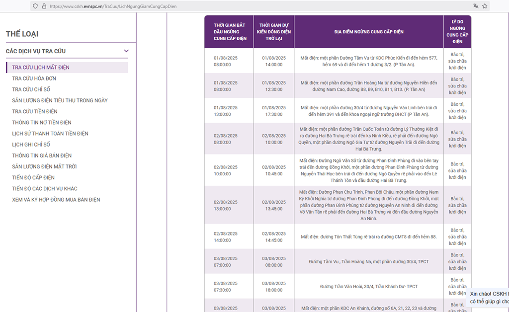 Lịch ngừng cấp điện tại Cần Thơ ngày mai 2/8 được cập nhật ngày 1/8 tại website của EVNSPC.