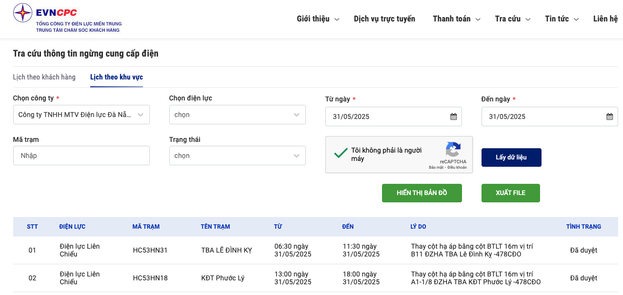 Lịch tạm ngừng cung cấp điện Đà Nẵng ngày mai 31/5 cập nhật ngày 30/5 trên website của Điện lực Đà Nẵng.