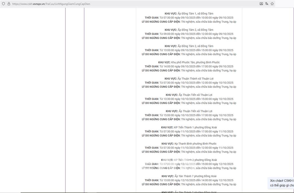 Thông tin về lịch cắt điện cập nhật mới nhất tại tỉnh Đồng Nai ngày 9/10/2025 cập nhật mới nhất.