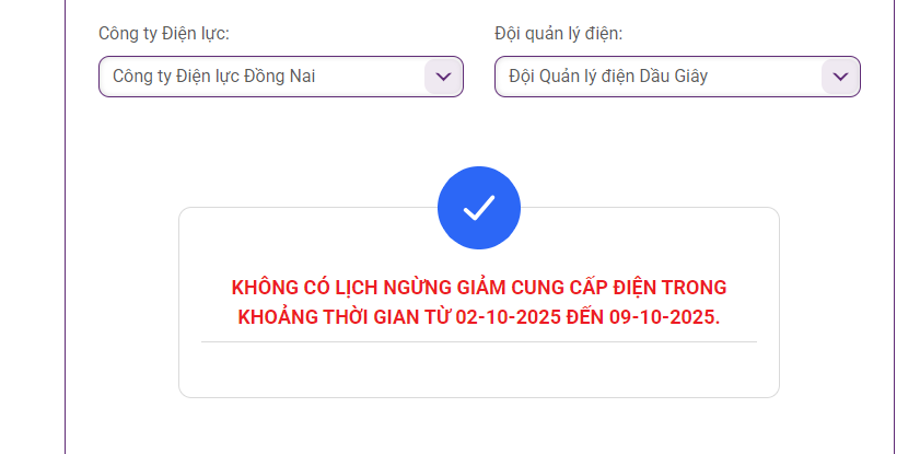 Lịch cắt điện cập nhật mới nhất tại các quận, huyện ở Đồng Nai từ website của Tổng công ty Điện lực miền Nam (EVNSPC), Công ty TNHH MTV Điện lực Đồng Nai không có kế hoạch cắt điện vào ngày 3/10.