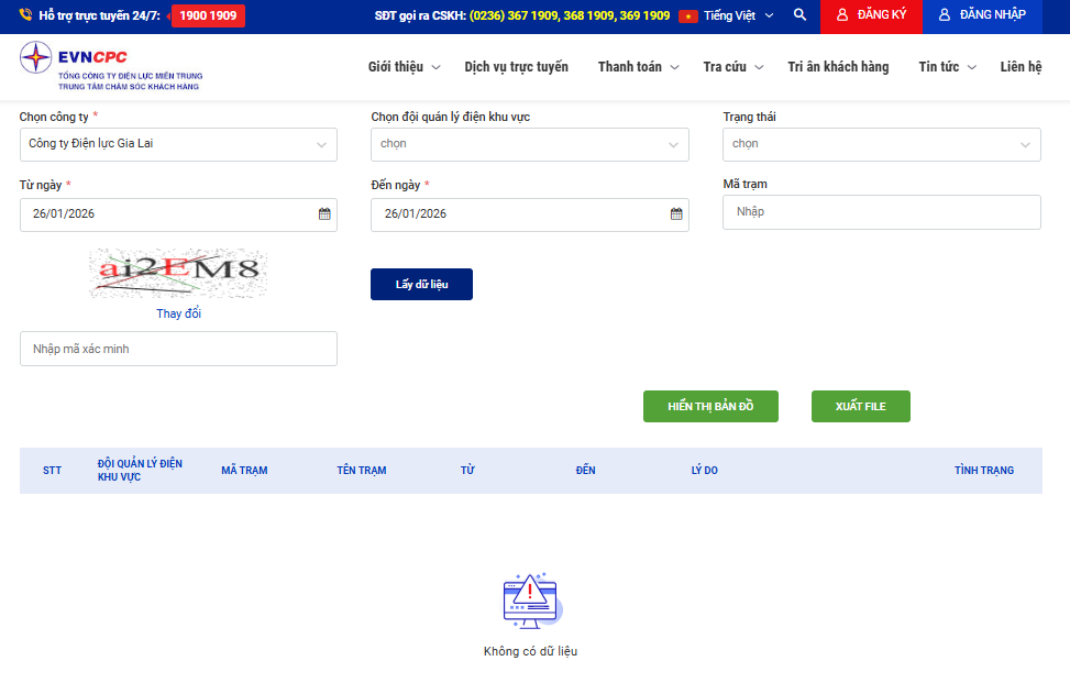 Thông tin cung cấp điện ở các xã, phường của tỉnh Gia Lai ngày 26/1/2026 được cập nhật mới nhất trên website của Tổng công ty Điện lực miền Trung.
